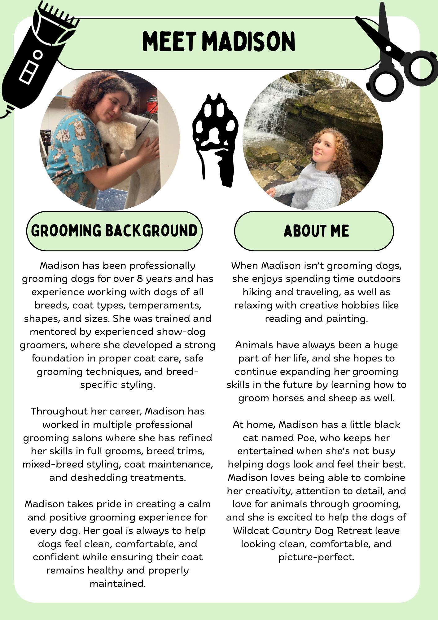 For the safety and comfort of all dogs in our care, we do not allow owners to remain in the grooming area during appointments. Many dogs behave differently when their owners are nearby, which can make grooming more stressful or difficult for them. Our groomer works carefully to create a calm and focused environment so each dog can have the best experience possible.